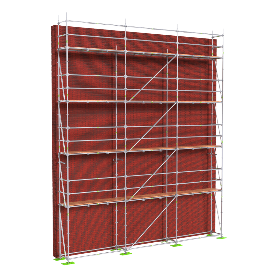 Een gebouwde RMS steiger kan zowel voor de zware metselwerken als lichtere onderhoudsklussen gebruikt worden! Het RMS systeem is universeel en volledig uitwisselbaar met onder andere Layher.